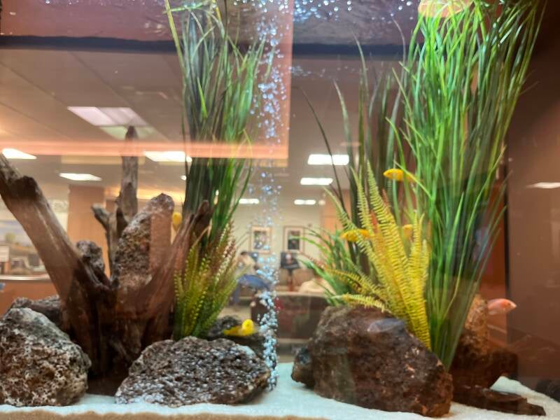 One of the more thoughtful parts about being at MDA is their artistic way of relieving stress and anxiety. Beautiful artworks and photos line the hallways and fish tanks are featured in many of the waiting rooms. After spending yesterday with KK's mouth doctor and staff, we are here early this morning for blood work and a CT scan of the neck. This afternoon--her annual mammogram, because...you gotta protect the girls once a year! Ladies: getter'dun! --AA
